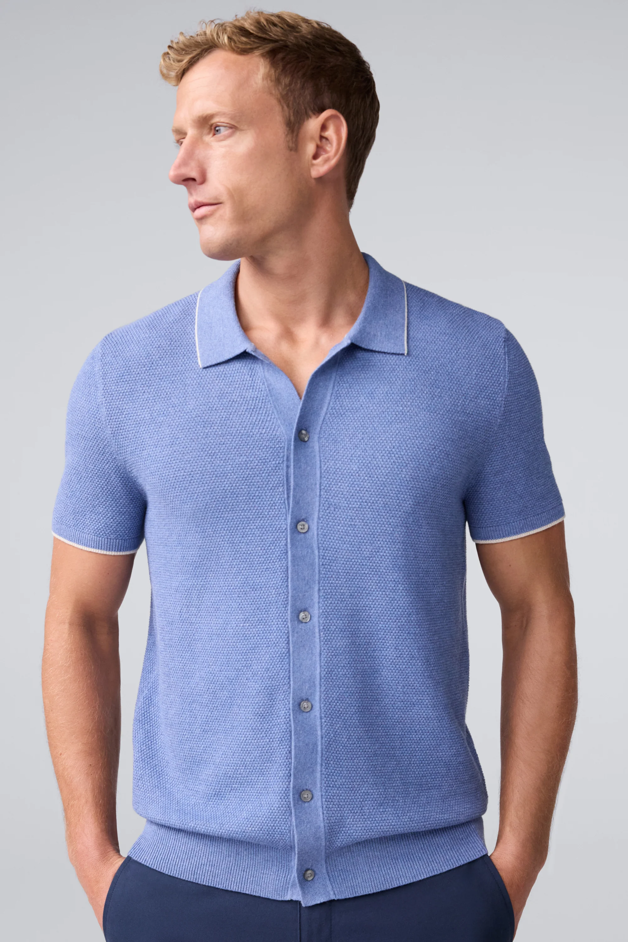 Tech Linen Button Up Sweater Polo